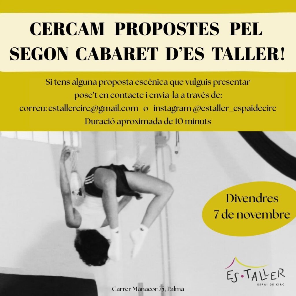 Es Taller ofereix organitzar mostres de circ o una altra disciplina artística. Si tens algun projecte que t’interessa mostrar, contacta’ns i ens posem a organitzar-ho!